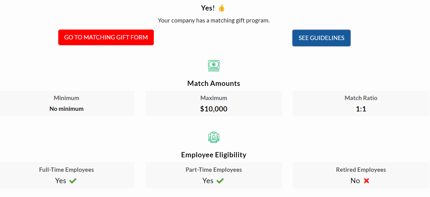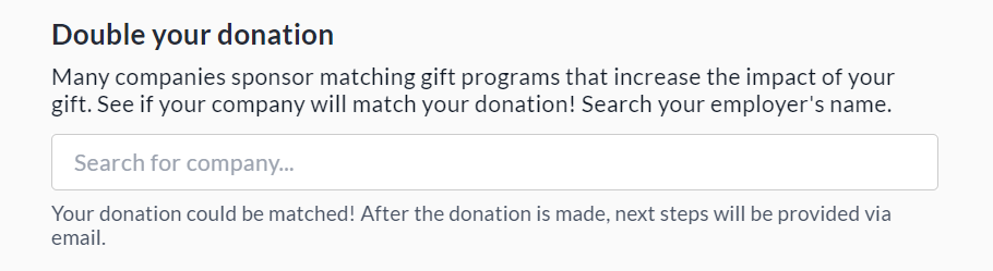 This integration allows donors to your CrowdChange fundraisers to select their company before checkout, learn whether or not they have a matching gift program, and find out how to apply for it.