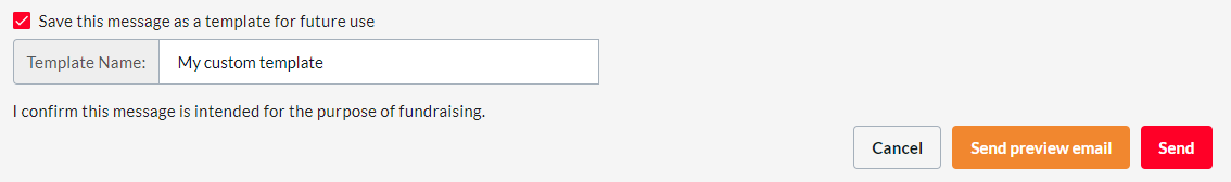 Please Note: Fundraiser owners can also save and delete their own templates. To do so, they can check the "Save this message as a template" checkbox when sending out an email campaign, and the next time they will be able to select it from the "Select Email Template" menu.