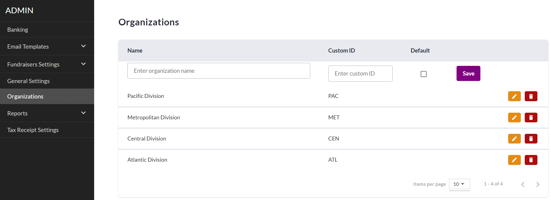 If your Foundation segments its fundraising regionally or has multiple groups operating under one umbrella, the Organizations feature is a great way to ensure that your back-end reporting reflects this, while still allowing all donations to flow to the same holistic source.