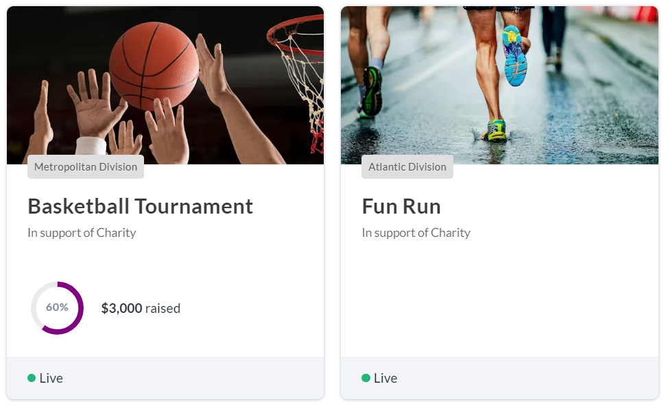 Once a fundraiser is live on your CrowdChange site, when using the Organizations feature, the fundraiser card will indicate at the bottom which Organization is running the fundraiser.