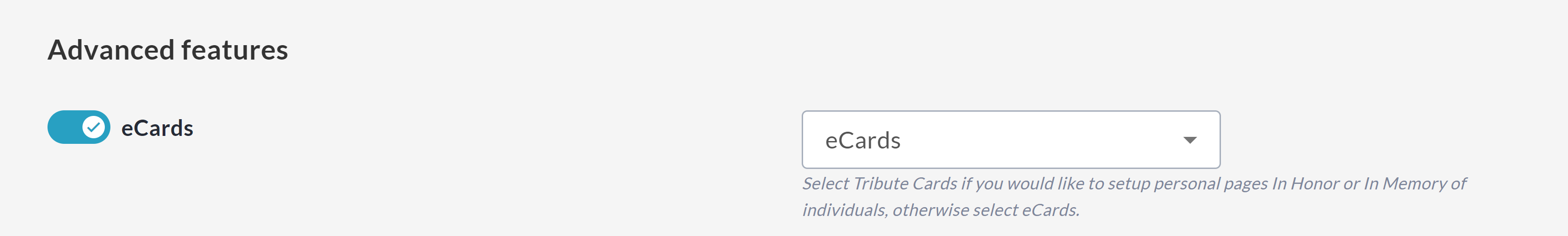 On the Additional Settings page, enable eCards under Advanced Features.