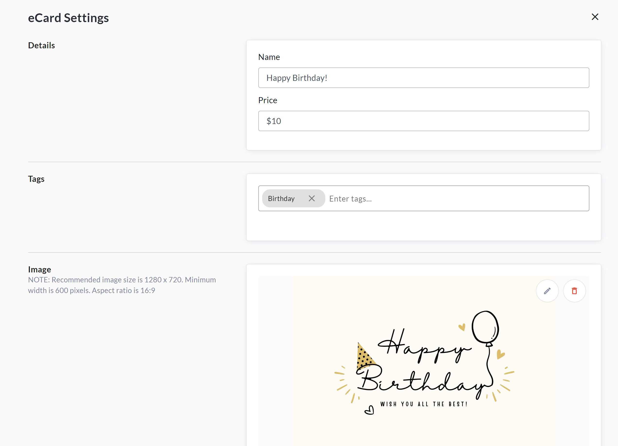 Once eCards is enabled on your fundraiser, the next step is to configure eCards settings and add cards.