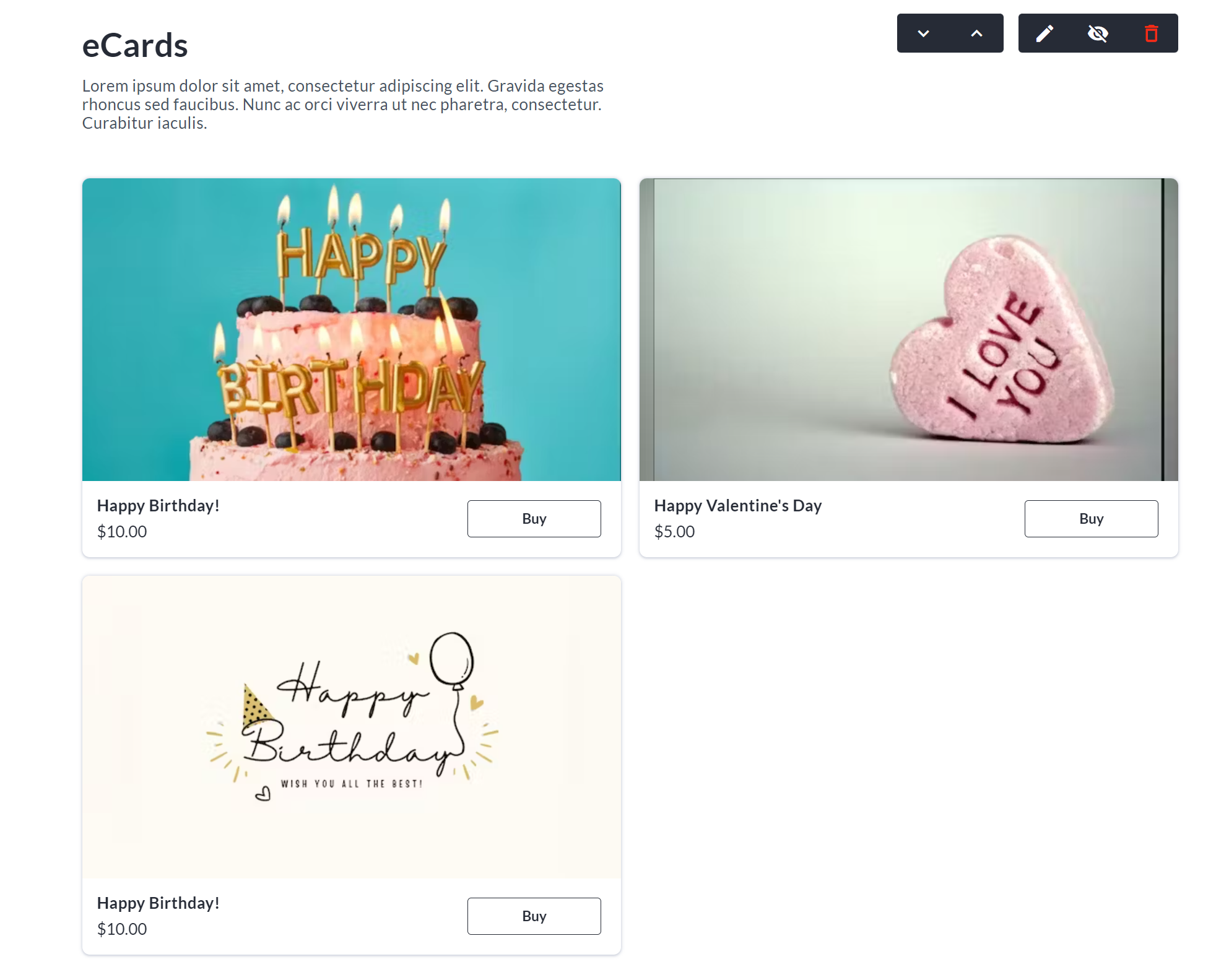 The eCards block will appear, showing any eCards you have already added.