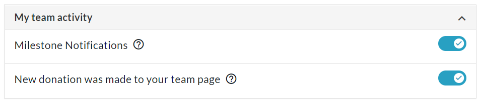 My fundraisers activity - Set which notifications you receive for the fundraisers you manage, such as ‘New Donation Received', ‘Donation Refunded’, ‘Milestone Notifications’ and more.