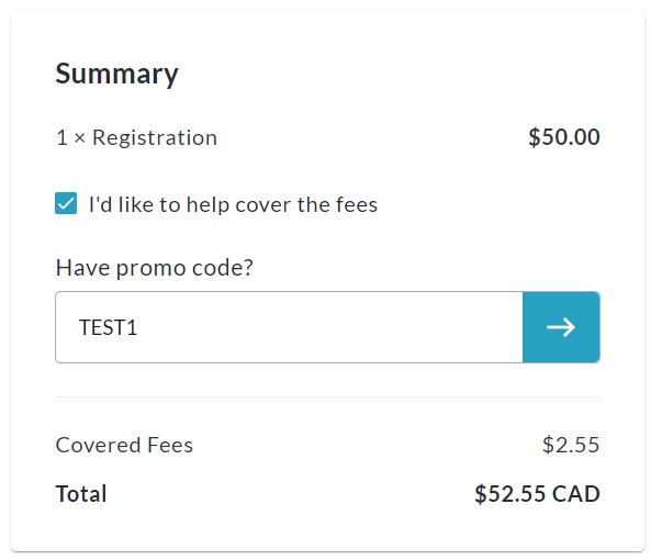 Promo Codes can be applied to Tickets, Merchandise and/or Registrations.