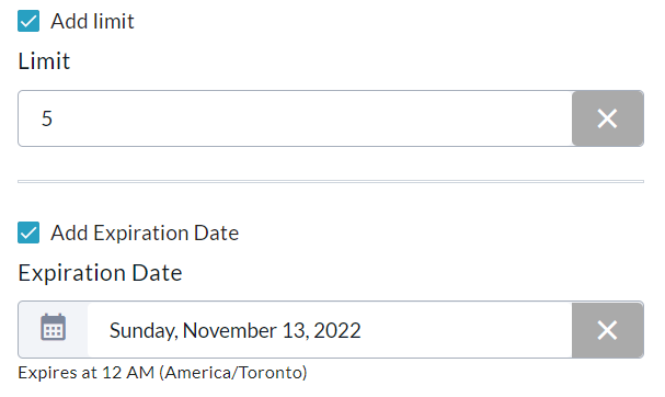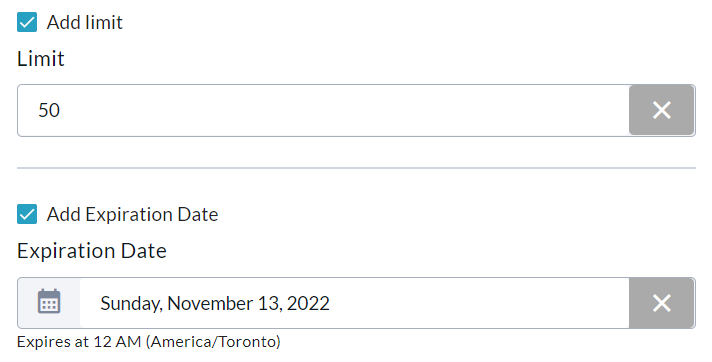 Limit and Expiration date have also been set.