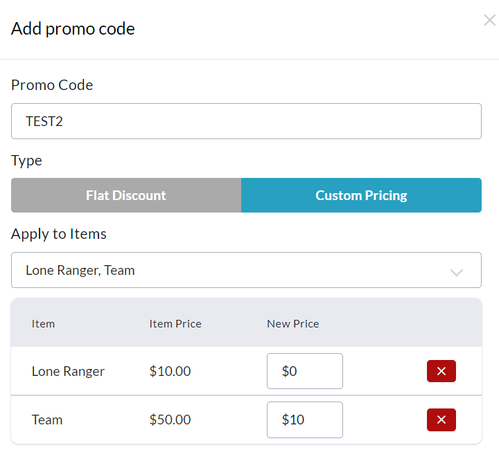 2. Select either Flat Discount or Custom Pricing (see description below).