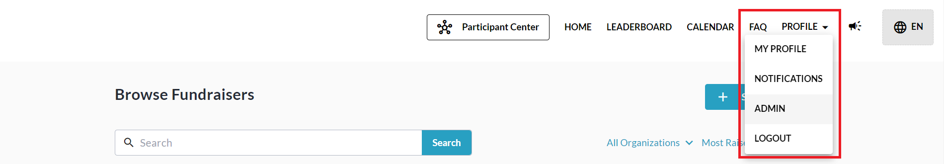 From anywhere on your CrowdChange site, go to Profile → Admin.