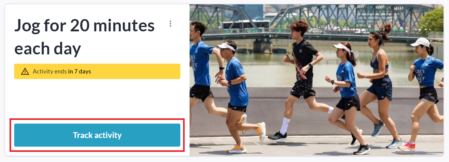 If you clicked See all available activities, click the Start Tracking button on the specific activity you would like to track progress towards. You may only track one activity at a time.