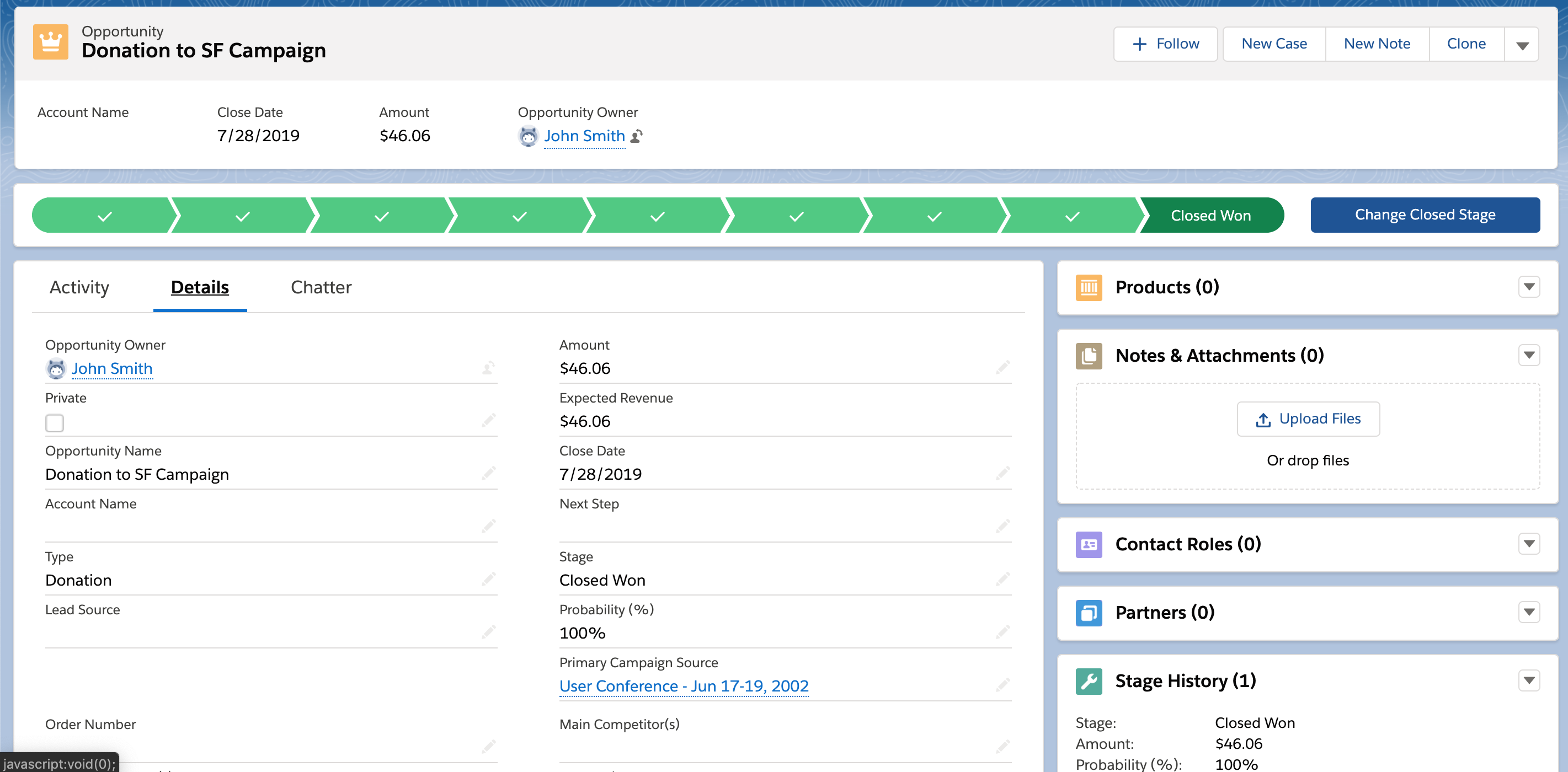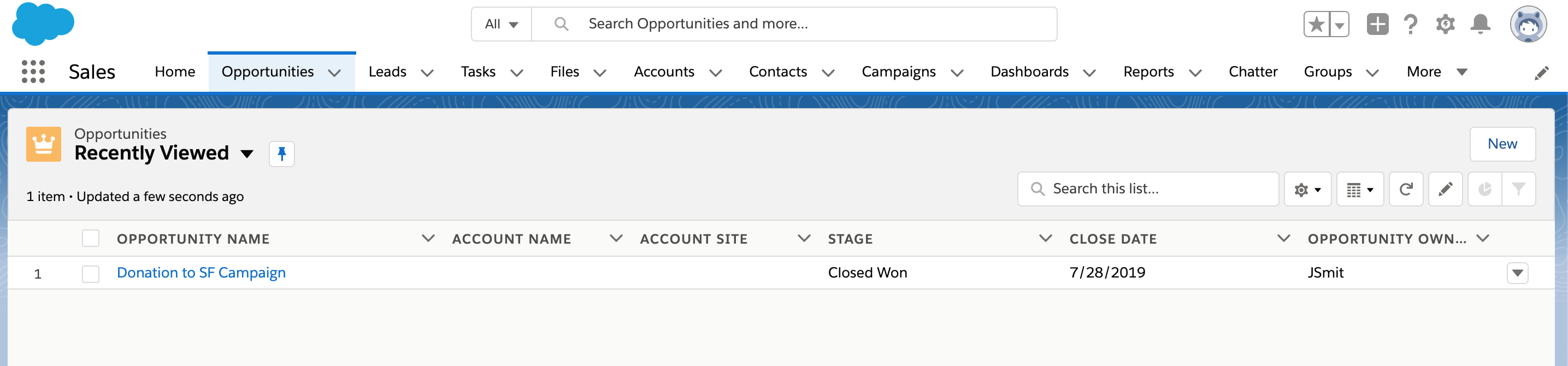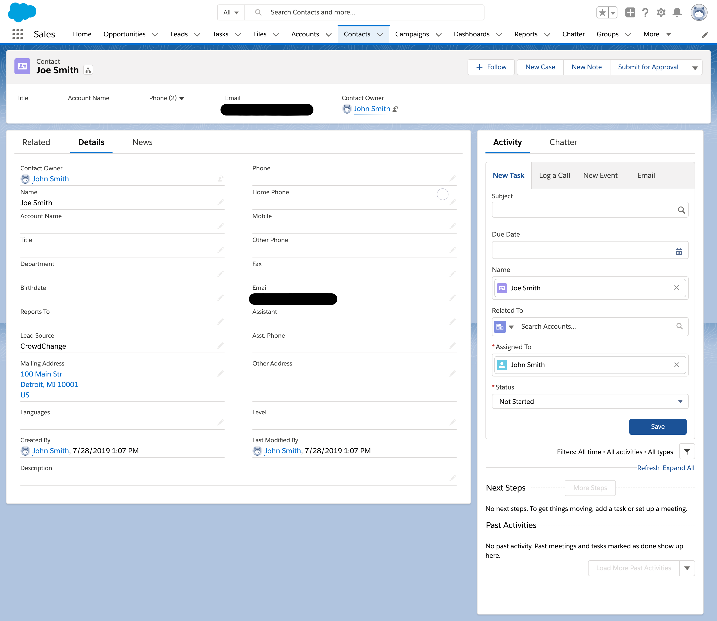If there is still no match, a new Contact will be created in Salesforce from the User information that we have on file in CrowdChange.Since Opportunities are assigned to Accounts, not Contacts - CrowdChange will only look for contacts with an Account ID associated with them. If an existing Contact is found without an Account ID, it will not be used.