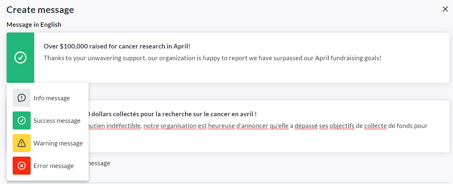 Once the feature has been enabled on your CrowdChange site, follow the steps below to create a message: