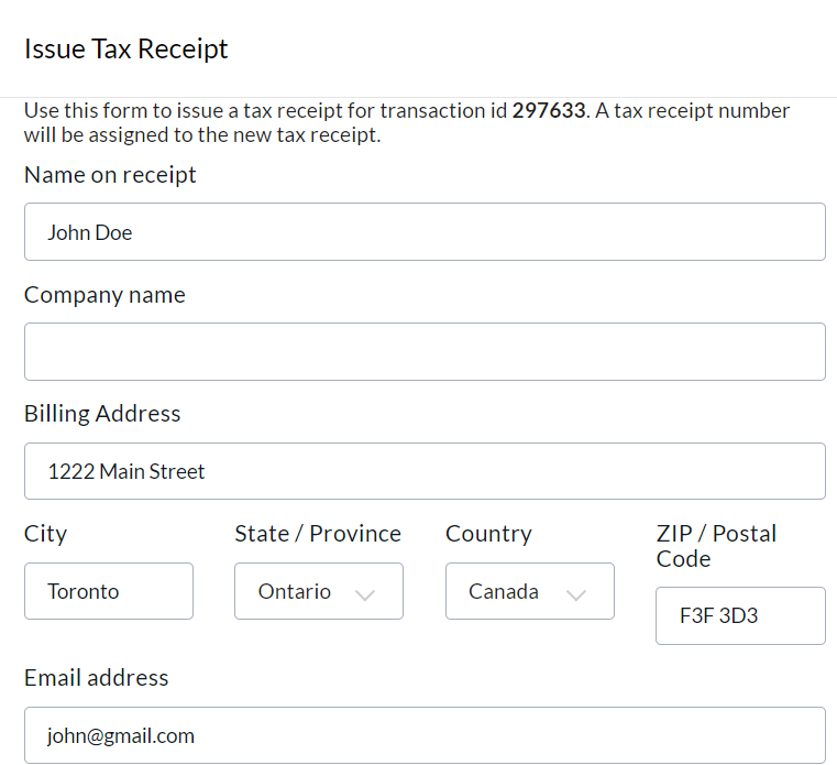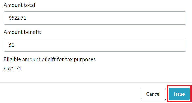 Click Issue Tax Receipt and fill out all necessary information in the window that appears.