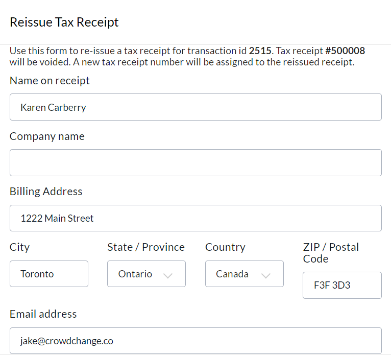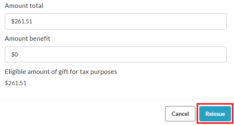 Click Re-issue Tax Receipt and fill out all necessary information in the window that appears.